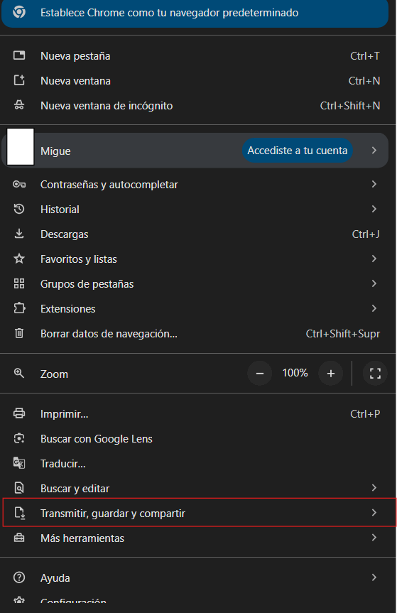 - Presiona en perzonalizar y controlar Google Chrome (los famosos 3 puntitos en la esquina superior derecha)